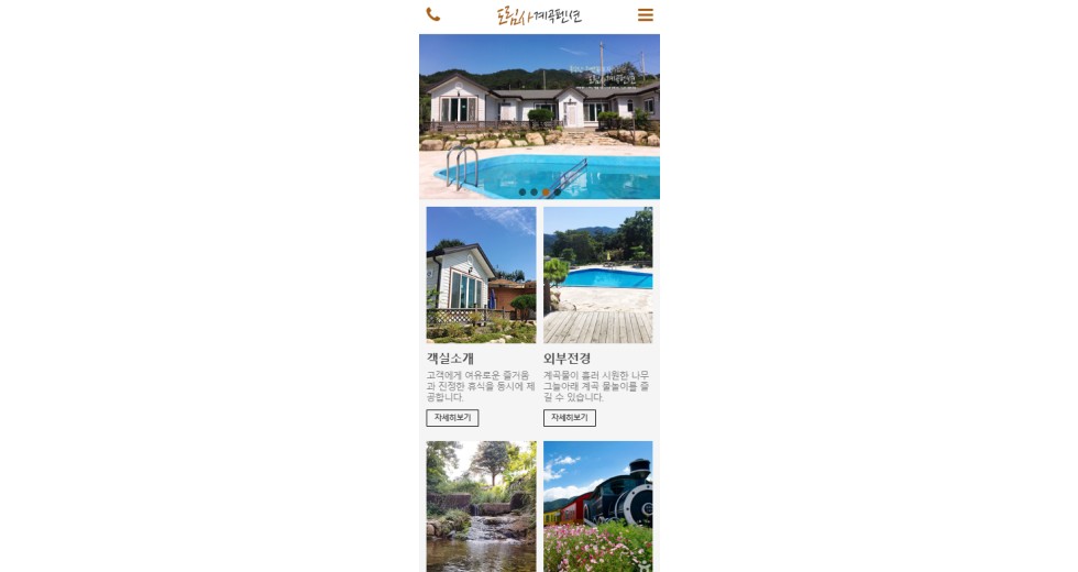 본 사이트의 컨텐츠는 무단으로 복사·게재·배포 등을 금합니다. 상세내용 게시글 본문 일반기업 도림사계곡펜션 제작기간 2017.09 홈페이지 주소 http://dorimsapension.com/ 홈페이지 타입 Website(웹사이트) / Mobile web(모바일웹) 도림사계곡펜션 디자인으로 견적상담 받기 🎁무료혜택 확인하기! 25가지 다양한 무료혜택을 확인해 보세요. 검색목록 목록
