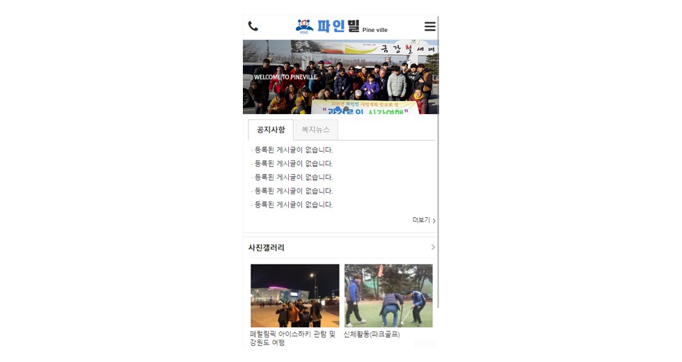 본 사이트의 컨텐츠는 무단으로 복사·게재·배포 등을 금합니다. 상세내용 게시글 본문 복지관 파인빌 제작기간 2018.03 홈페이지 주소 http://pineville.or.kr 홈페이지 타입 Mobile web(모바일웹) 파인빌 디자인으로 견적상담 받기 🎁무료혜택 확인하기! 25가지 다양한 무료혜택을 확인해 보세요. 검색목록 목록