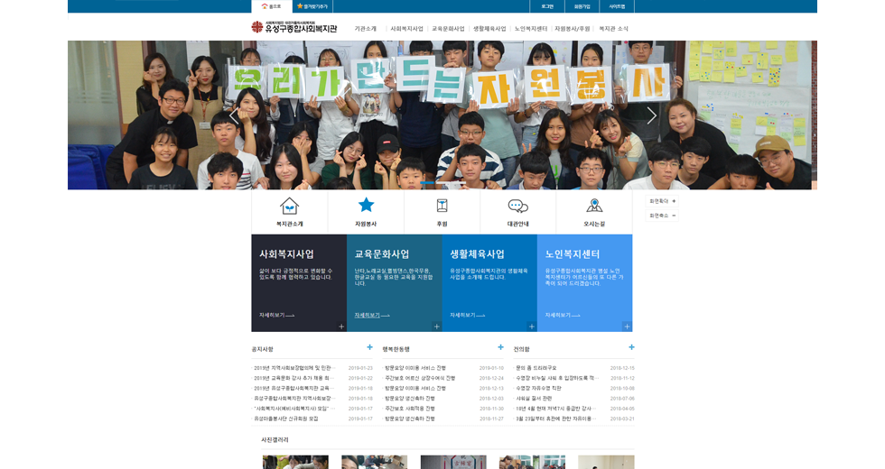 본 사이트의 컨텐츠는 무단으로 복사·게재·배포 등을 금합니다. 상세내용 게시글 본문 복지관 유성구종합사회복지관 제작기간 2018.07 홈페이지 주소 http://yuseongswc.or.kr/ 홈페이지 타입 Website(웹사이트) / Mobile web(모바일웹) 유성구종합사회복지관 디자인으로 견적상담 받기 🎁무료혜택 확인하기! 25가지 다양한 무료혜택을 확인해 보세요. 검색목록 목록