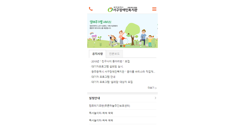 본 사이트의 컨텐츠는 무단으로 복사·게재·배포 등을 금합니다. 상세내용 게시글 본문 복지관 광주서구장애인복지관 제작기간 2018.07 홈페이지 주소 http://www.bjsk.kr 홈페이지 타입 Mobile web(모바일웹) 광주서구장애인복지관 디자인으로 견적상담 받기 🎁무료혜택 확인하기! 25가지 다양한 무료혜택을 확인해 보세요. 검색목록 목록