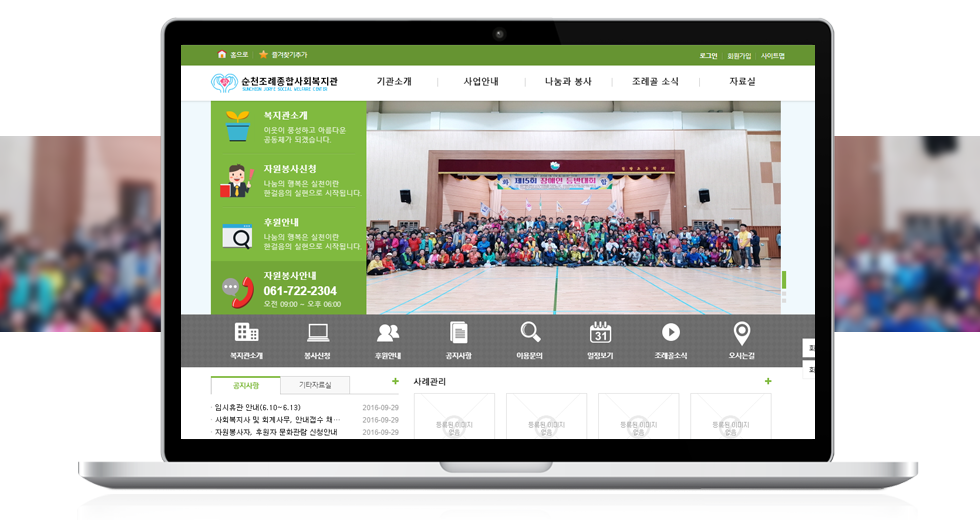 본 사이트의 컨텐츠는 무단으로 복사·게재·배포 등을 금합니다. 상세내용 게시글 본문 복지관 순천조례종합사회복지관 제작기간 2019.01 홈페이지 주소 http://joryeswc.or.kr 홈페이지 타입 Website(웹사이트) / Mobile web(모바일웹) 순천조례종합사회복지관 디자인으로 견적상담 받기 🎁무료혜택 확인하기! 25가지 다양한 무료혜택을 확인해 보세요. 검색목록 목록