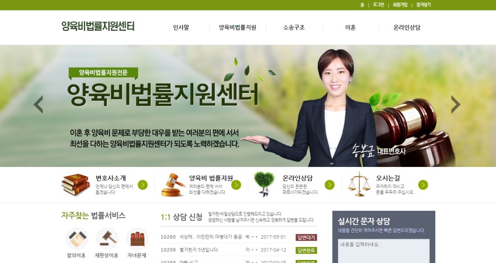 본 사이트의 컨텐츠는 무단으로 복사·게재·배포 등을 금합니다. 상세내용 게시글 본문 일반기업 양육비법률지원센터 제작기간 2015.05 홈페이지 주소 http://divorce2582.com 홈페이지 타입 Website(웹사이트) / Mobile web(모바일웹) 양육비법률지원센터 디자인으로 견적상담 받기 🎁무료혜택 확인하기! 25가지 다양한 무료혜택을 확인해 보세요. 검색목록 목록
