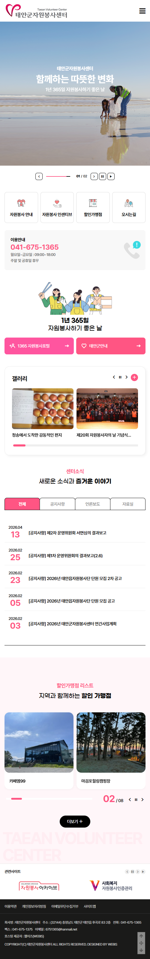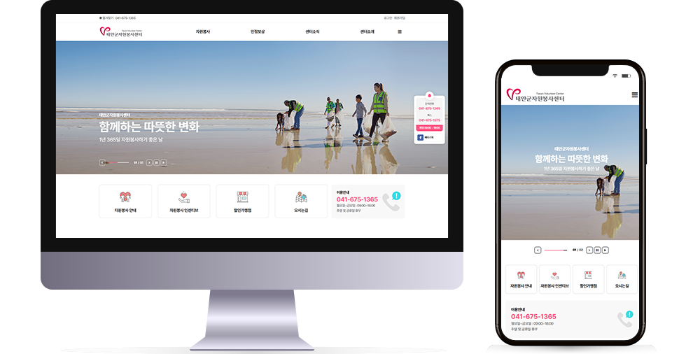 본 사이트의 컨텐츠는 무단으로 복사·게재·배포 등을 금합니다. PC 미리보기 태블릿 미리보기 모바일 미리보기 단체협회 태안군자원봉사센터 제작기간 2026-03.19~2026.04.20 홈페이지 주소 https://taeanvol.com/ 홈페이지 타입 반응형 홈페이지 디자인 컨셉 지역 자원봉사 활동을 지원하고 연결하는 통합 플랫폼 태안군자원봉사센터 디자인으로 견적상담 받기 🎁무료혜택 확인하기! 25가지 다양한 무료혜택을 확인해 보세요. 목록