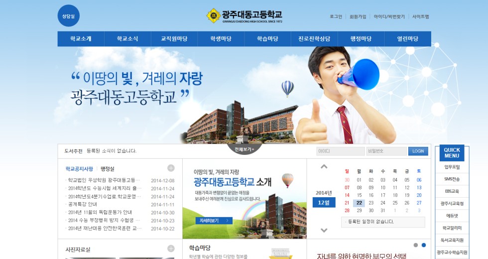 본 사이트의 컨텐츠는 무단으로 복사·게재·배포 등을 금합니다. 상세내용 게시글 본문 교육 광주대동고등학교 제작기간 2014.04 홈페이지 주소 http://k-dd.hs.kr 홈페이지 타입 Website(웹사이트) / Mobile web(모바일웹) / Mobile app(모바일앱) 광주대동고등학교 디자인으로 견적상담 받기 🎁무료혜택 확인하기! 25가지 다양한 무료혜택을 확인해 보세요. 검색목록 목록