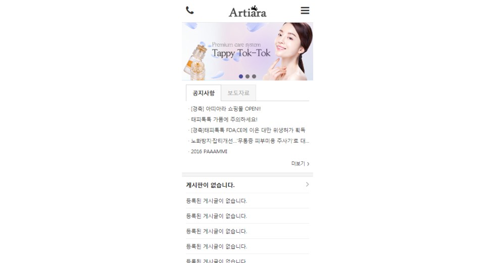 본 사이트의 컨텐츠는 무단으로 복사·게재·배포 등을 금합니다. 상세내용 게시글 본문 일반기업 아띠아라 제작기간 2016.12 홈페이지 주소 http://artiara.co.kr 홈페이지 타입 Website(웹사이트) / Mobile web(모바일웹) 아띠아라 디자인으로 견적상담 받기 🎁무료혜택 확인하기! 25가지 다양한 무료혜택을 확인해 보세요. 검색목록 목록