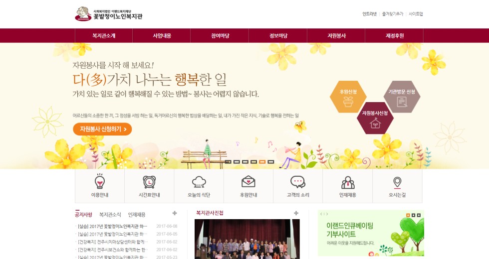 본 사이트의 컨텐츠는 무단으로 복사·게재·배포 등을 금합니다. 상세내용 게시글 본문 복지관 꽃밭정이노인복지관 제작기간 2017.02 홈페이지 주소 http://kkotbat.or.kr 홈페이지 타입 Website(웹사이트) 꽃밭정이노인복지관 디자인으로 견적상담 받기 🎁무료혜택 확인하기! 25가지 다양한 무료혜택을 확인해 보세요. 검색목록 목록