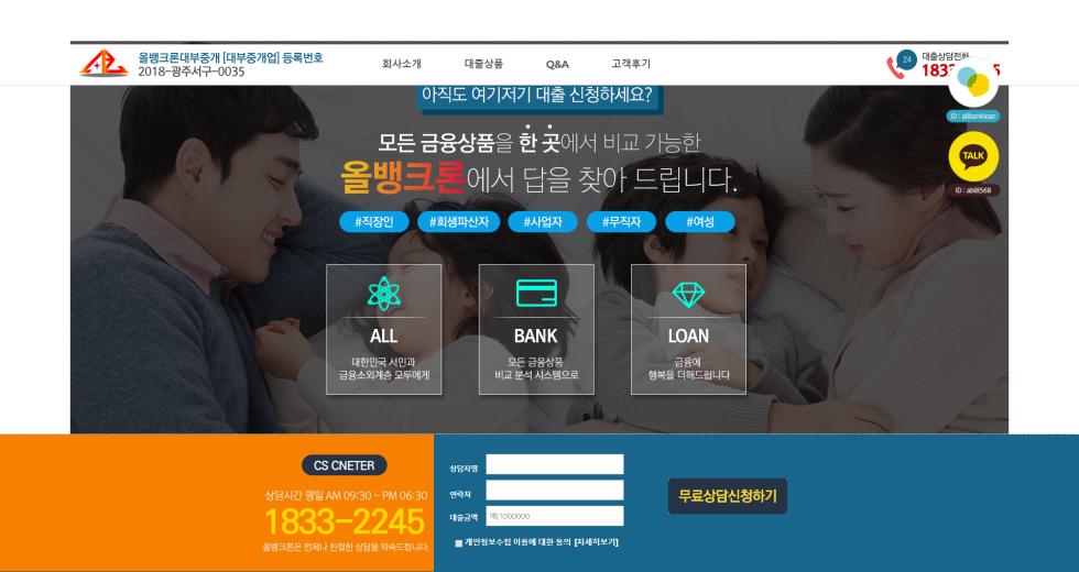 본 사이트의 컨텐츠는 무단으로 복사·게재·배포 등을 금합니다. 상세내용 게시글 본문 일반기업 올뱅크론 제작기간 2018.08 홈페이지 주소 http://allbankloan.co.kr 홈페이지 타입 Website(웹사이트)-반응형 올뱅크론 디자인으로 견적상담 받기 🎁무료혜택 확인하기! 25가지 다양한 무료혜택을 확인해 보세요. 검색목록 목록