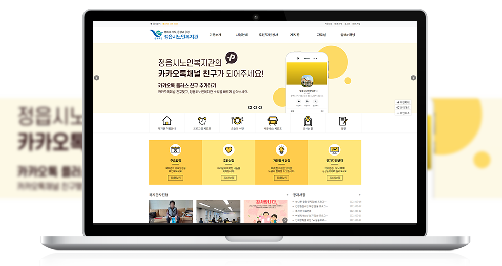 본 사이트의 컨텐츠는 무단으로 복사·게재·배포 등을 금합니다. 상세내용 게시글 본문 복지관 정읍시노인복지관 제작기간 2020.12 홈페이지 주소 http://www.jusc.or.kr/ 홈페이지 타입 Responsible website(반응형웹) 정읍시노인복지관 디자인으로 견적상담 받기 🎁무료혜택 확인하기! 25가지 다양한 무료혜택을 확인해 보세요. 목록