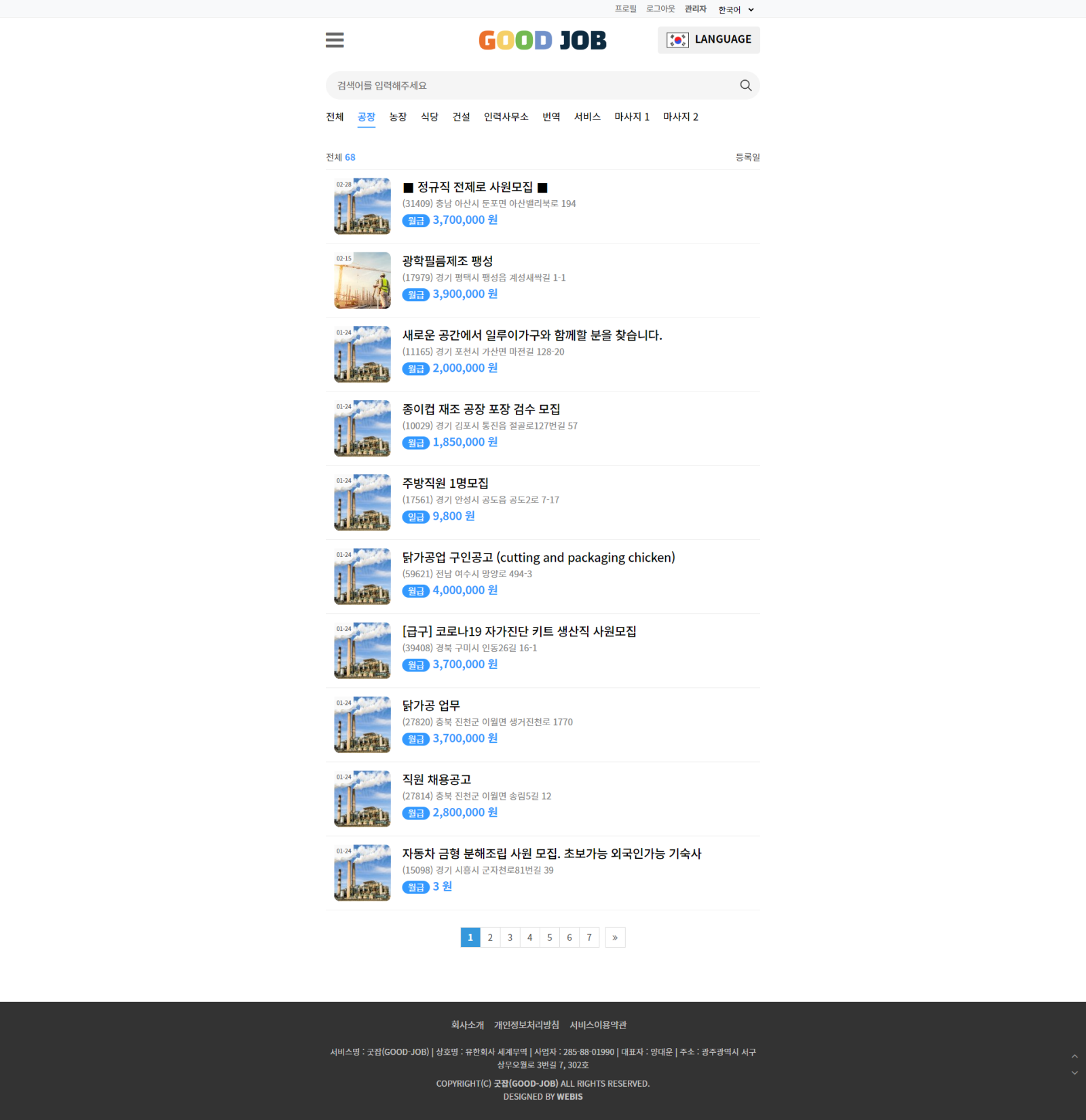 본 사이트의 컨텐츠는 무단으로 복사·게재·배포 등을 금합니다. 상세내용 게시글 본문 일반기업 굿잡 제작기간 2021.12 홈페이지 주소 https://good-job.kr 홈페이지 타입 Mobile web(모바일웹) 굿잡 디자인으로 견적상담 받기 🎁무료혜택 확인하기! 25가지 다양한 무료혜택을 확인해 보세요. 검색목록 목록