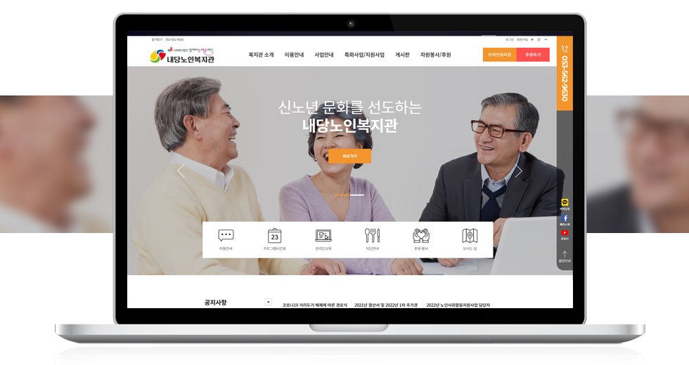 본 사이트의 컨텐츠는 무단으로 복사·게재·배포 등을 금합니다. 상세내용 게시글 본문 복지관 내당노인복지관 제작기간 2022.05 홈페이지 주소 http://sndsenior.or.kr/ 홈페이지 타입 Responsible website(반응형웹) 내당노인복지관 디자인으로 견적상담 받기 🎁무료혜택 확인하기! 25가지 다양한 무료혜택을 확인해 보세요. 목록