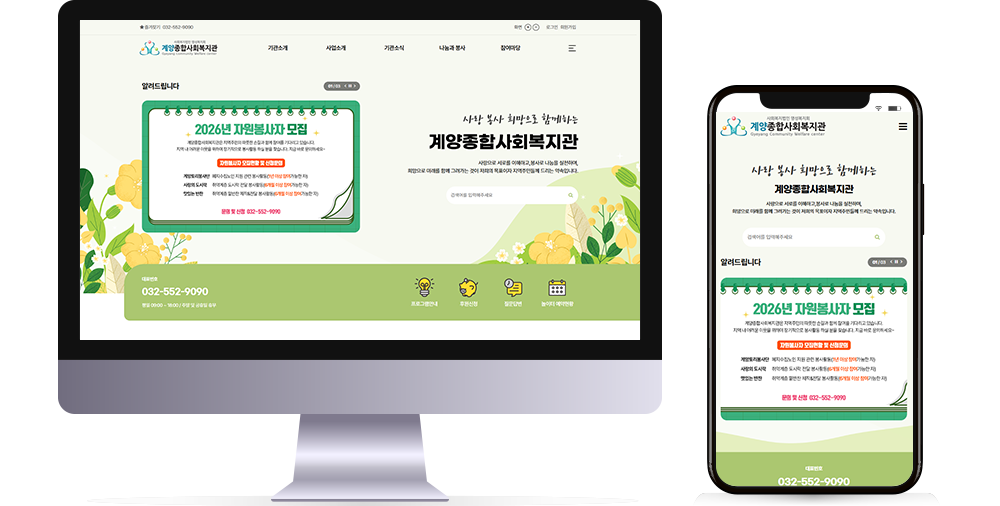본 사이트의 컨텐츠는 무단으로 복사·게재·배포 등을 금합니다. PC 미리보기 태블릿 미리보기 모바일 미리보기 복지관 계양종합사회복지관 제작기간 2026.03.23~2026.04.06 홈페이지 주소 https://gywel.or.kr 홈페이지 타입 반응형 홈페이지 프로그램 기능 후원신청, 자원봉사 신청 등 디자인 컨셉 지역과 이웃을 잇는 따뜻한 소통과 나눔의 복지 플랫폼 계양종합사회복지관 디자인으로 견적상담 받기 🎁무료혜택 확인하기! 25가지 다양한 무료혜택을 확인해 보세요. 목록