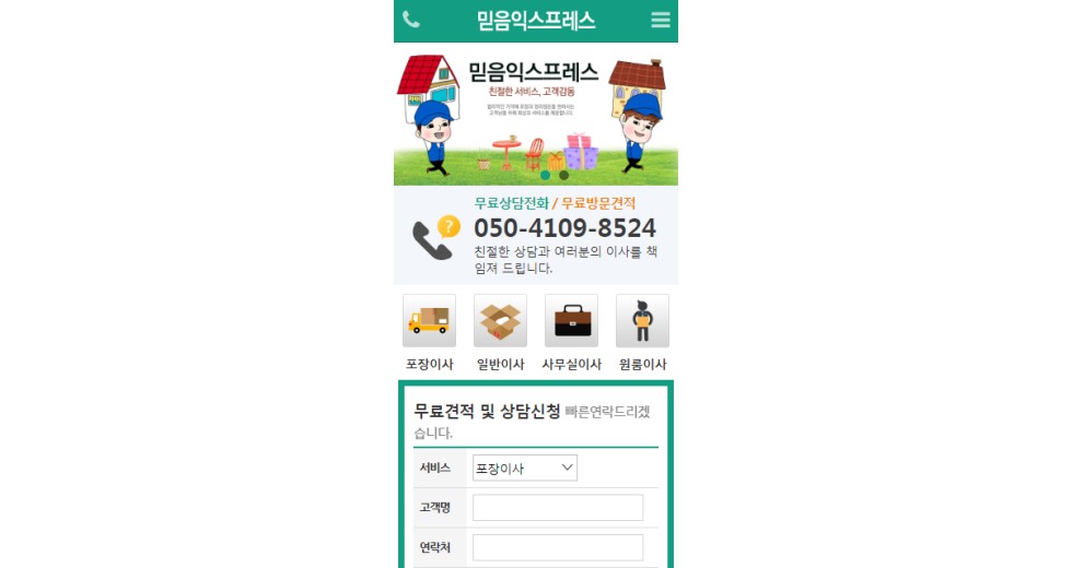 본 사이트의 컨텐츠는 무단으로 복사·게재·배포 등을 금합니다. 상세내용 게시글 본문 일반기업 믿음익스프레스 제작기간 2016.12 홈페이지 주소 http://me24.kr 홈페이지 타입 Website(웹사이트) / Mobile web(모바일웹) 믿음익스프레스 디자인으로 견적상담 받기 🎁무료혜택 확인하기! 25가지 다양한 무료혜택을 확인해 보세요. 검색목록 목록